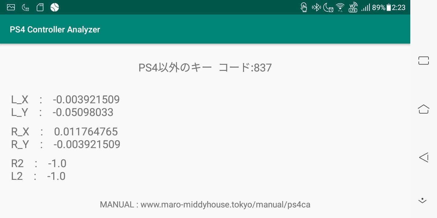 Tombol R2 / L2 adalah -1.0 saat tidak ditekan dan 1.0 saat ditekan sepenuhnya. Nilai aktual juga tampaknya + -1.0. Jika itu tidak menjadi + -1.0, masalah yang akselerator tidak sepenuhnya terbuka muncul tergantung pada permainan.