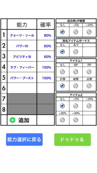 PHANTASY STAR ONLINE 2 での特殊能力追加の確率をシミュレートするためのアプリです。