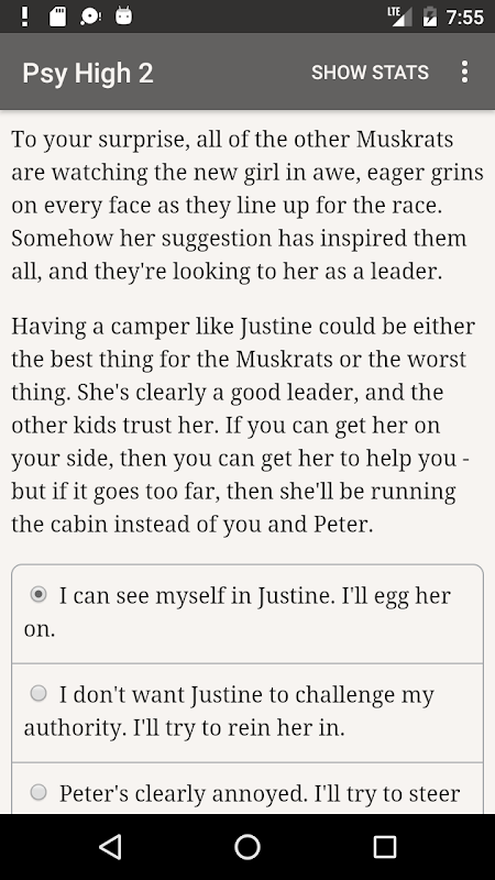 Setahun setelah menyelamatkan Kingsport High di pesta prom junior, Anda lulus, dan bekerja sebagai konselor di perkemahan sebelum berangkat ke perguruan tinggi. Kekuatan Anda untuk membaca pikiran tentu berguna saat Anda bertanggung jawab atas kabin yang penuh dengan anak berusia sembilan dan sepuluh tahun! Anda bertanggung jawab untuk merawat mereka dan mengajari mereka semua yang Anda ketahui. Namun, Anda juga menikmati musim panas yang bebas: Anda jauh dari orang tua dan sendirian.
