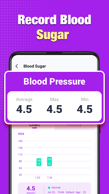 Dengan antarmuka input yang sederhana, Anda dapat mencatat tekanan sistolik, tekanan diastolik, nadi, dan gula darah kapan saja, di mana saja.