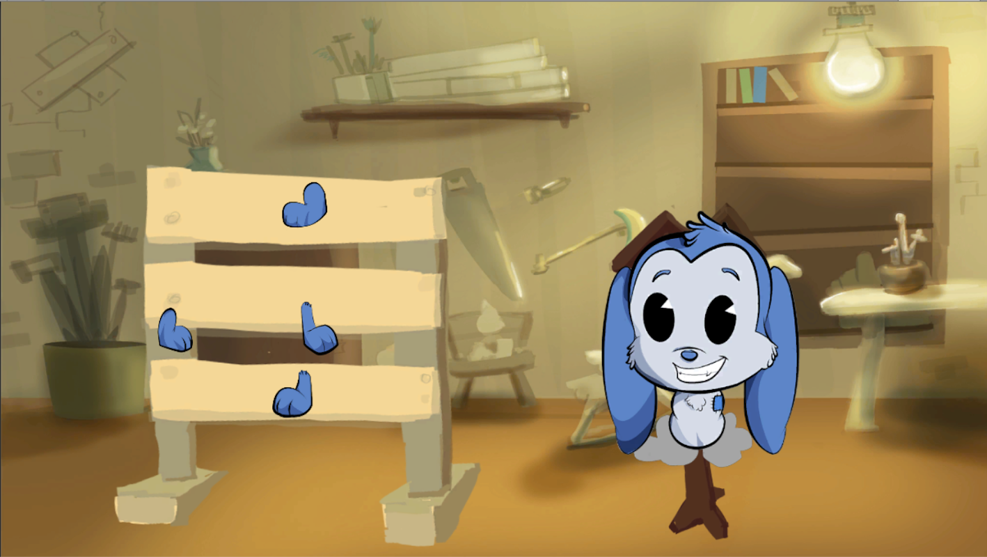 1) Create Bruno: kids will have to create Bruno by dragging and matching the puppet parts to a given silhouette. Bruno is happy when they are getting it right and upset when they are wrong.