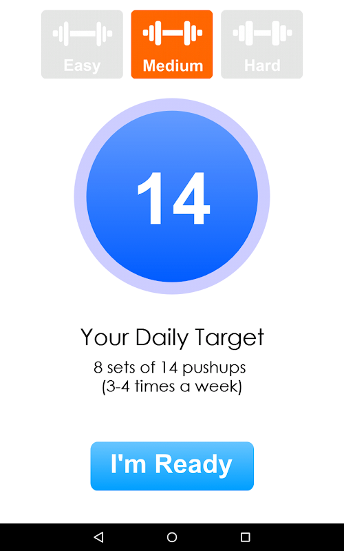 ★ modus Pelatihan - melakukan sejumlah push up di beberapa set. Pilih antara 3 tingkat yang berbeda