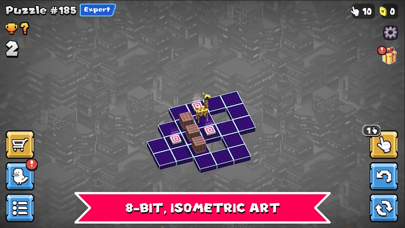 Bisakah kamu memecahkan permainan puzzle Sokoban ini dengan mendorong semua kotak/peti ke lokasi yang diinginkan? Kedengarannya mudah? Cobalah sendiri dengan "Pushy Boxes" dan pikirkan lagi! Ratusan puzzle sokoban yang menantang menanti dan kamu akan menjadi otak utama dari permainan yang sangat sulit tetapi sangat adiktif ini.