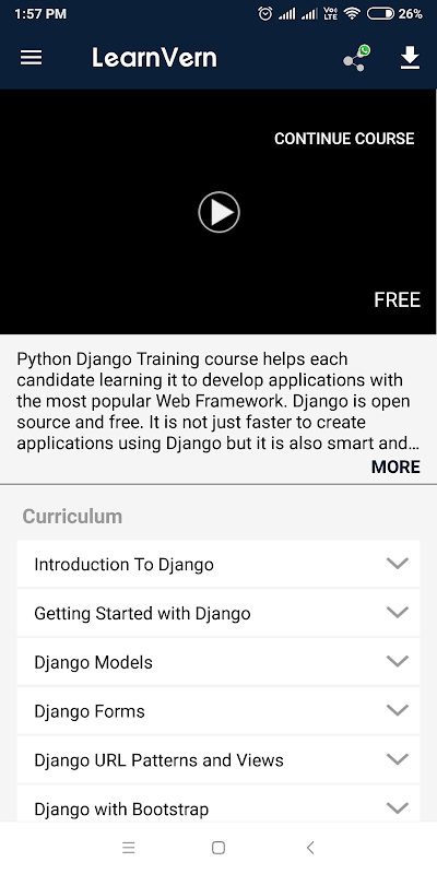 Python Django course at LearnVern will cover 'list topics"Getting Started with Django,Models,Forms,Django URL Patterns and Views,Django with Bootstrap,Django User Model,Django Send Email,Django Templates,Django Project Analyzation,Django Class Based Views,Django Tests,Django Rest API.