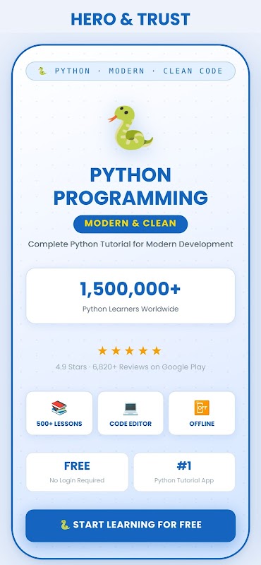 Pemrograman Python adalah aplikasi gratis terlengkap untuk menguasai Python dari awal. Baik Anda seorang pemula atau pengembang berpengalaman yang menargetkan peran AI, ilmu data, dan backend — aplikasi ini mencakup dasar-dasar Python, OOP, pembelajaran mesin, dan tren AI 2026 dalam bahasa Anda sendiri, kapan saja, di mana saja.