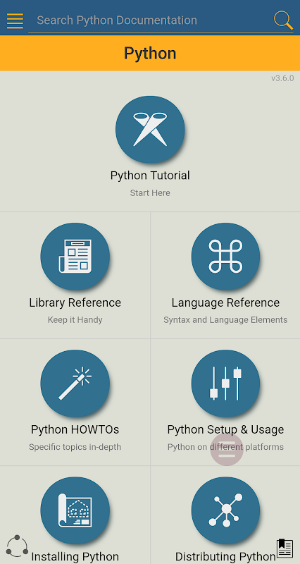 Sebuah komprehensif, benar-benar offline Python Tutorial & Python Dokumentasi App