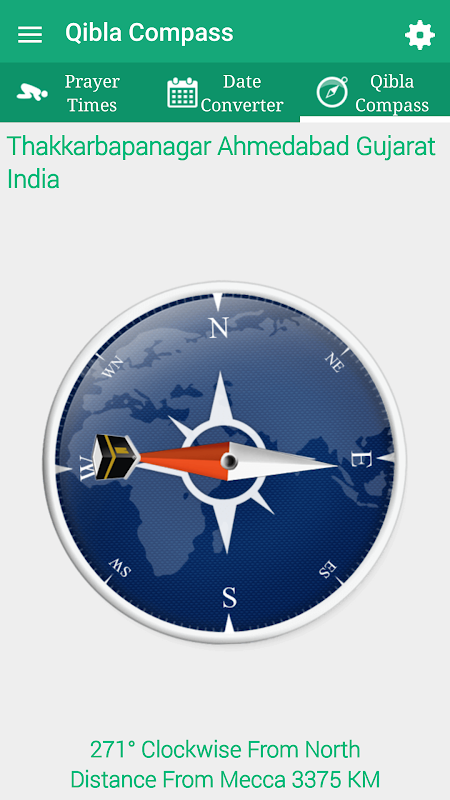 • Aplikasi dapat menggunakan Lokasi rekaman terakhir perangkat untuk menunjukkan arah kiblat.