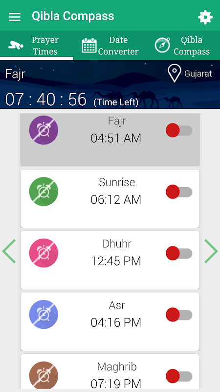• Menunjukkan waktu garam untuk setiap hari Namaz.