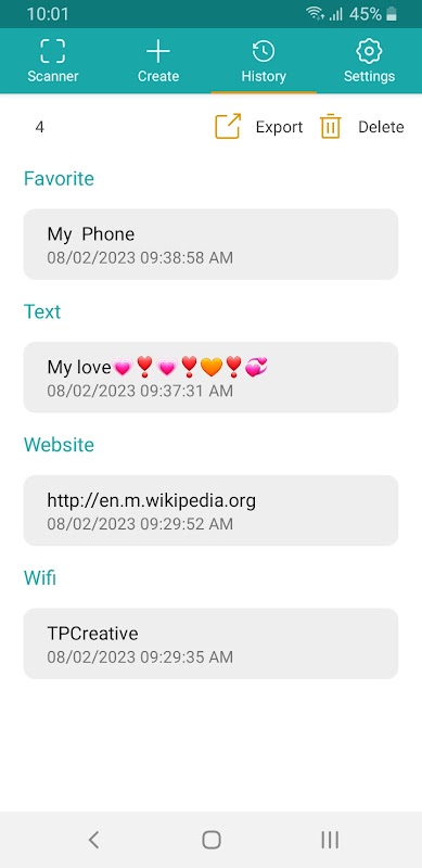 - Save QR history, filter support, and search your QR scan history
