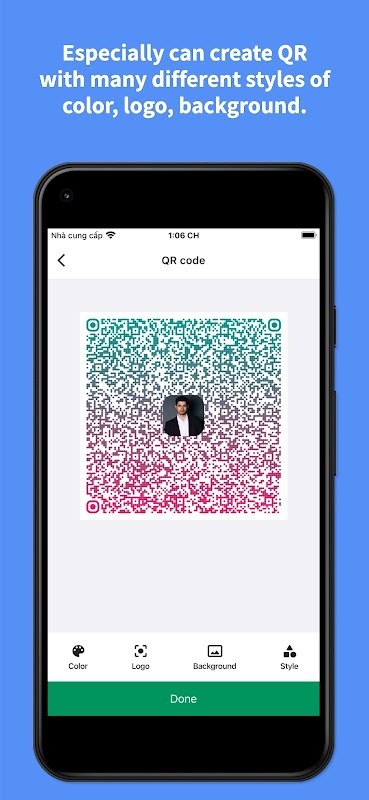 9. Multi Pilihan untuk menghasilkan Kode QR seperti: Warna, Logo, Latar Belakang, Gaya