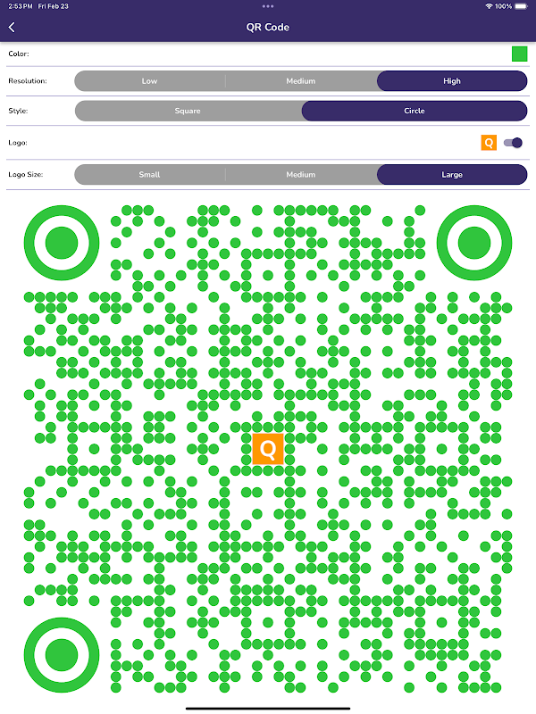 Tingkatkan kode QR Anda ke level berikutnya dengan pengaturan resolusi yang dapat disesuaikan, memungkinkan Anda mengoptimalkan kejelasan dan kinerja. Ingin membuat kode QR Anda lebih menonjol? Cukup tambahkan logo Anda di tengah dan sesuaikan ukurannya untuk melengkapi desain Anda dengan sempurna.