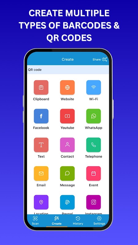 Anda dapat membuat berbagai kode QR dan barcode, seperti kontak, produk, URL, Wi-Fi, teks, email, dan lain sebagainya. Semua fitur gratis.