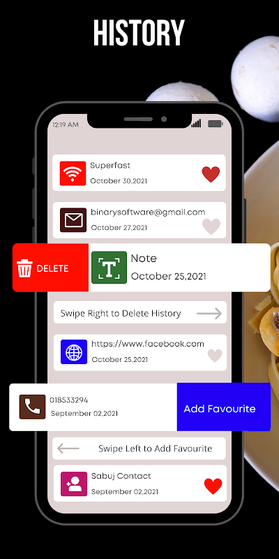 Pemindaian kode QR / pemindaian barcode, hasilkan kode QR dan tambahkan riwayat kode QR favorit dengan pencarian dan filter.