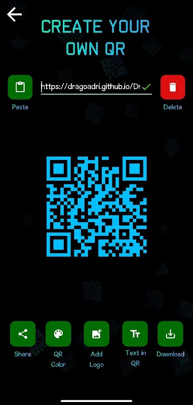 Baca dan buat kode QR Anda sendiri! Anda mungkin memerlukan url yang dilampirkan ke kode QR atau mungkin hanya membuat kode QR dari url, buat dengan aplikasi ini, ubah warnanya, tambahkan ikon, unduh teks, dan bagikan!
