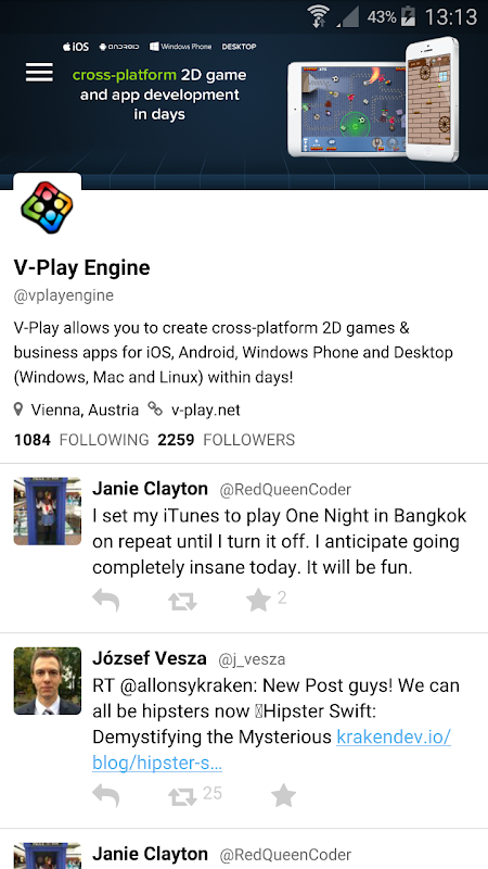 The V-Play SDK allows native user experience with a single code base and fluid animations. You can download it together with the full source code of this app for free at