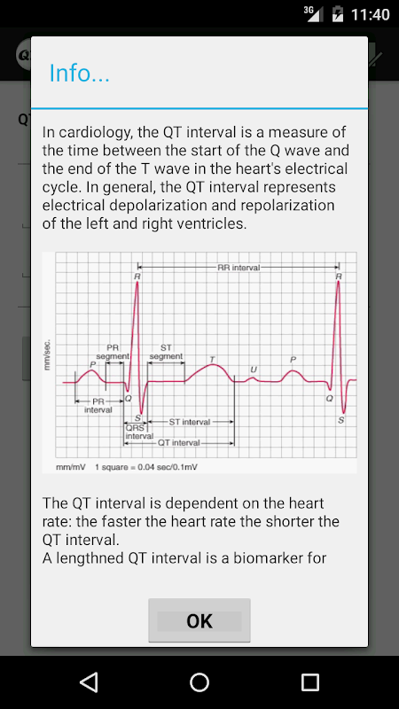 The QT interval is an important ECG parameter and the identification of ECGs with long QT syndrome is of clinical importance. The QT interval is dependent on the heart rate in an obvious way (the faster the heart rate the shorter the QT interval) and may be adjusted to improve the detection of patients at increased risk of ventricular arhythmia. QTc is the QT interval corrected for heart rate