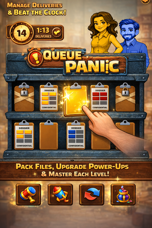 Dengan tingkat kesulitan yang meningkat, lebih banyak jenis berkas, slot terbatas, dan tekanan waktu, Queue Panic menantang fokus, kecepatan, dan strategi Anda. Mudah dimainkan, sulit dikuasai—game ini akan membuat otak Anda tetap siaga.