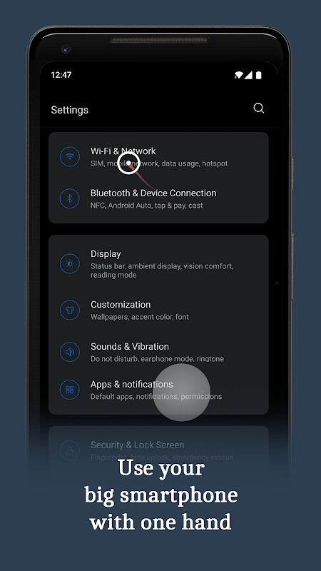 Memudahkan penggunaan smartphone berukuran besar dengan satu tangan dengan menggunakan kursor.