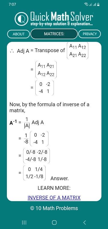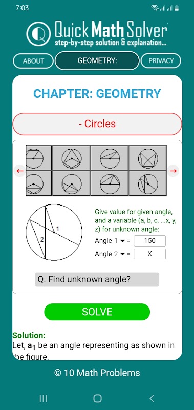 Quick Math Solver adalah aplikasi Android yang dirancang untuk siswa kelas 6 hingga 10. Aplikasi ini memberikan solusi langkah demi langkah untuk berbagai masalah matematika, yang mencakup topik mulai dari aritmatika dan aljabar hingga geometri, pengukuran, statistik, dan matriks.