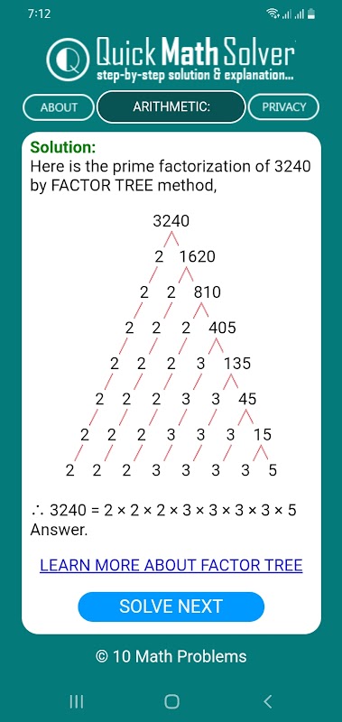 Quick Math Solver adalah aplikasi Android yang dirancang untuk siswa kelas 6 hingga 10.