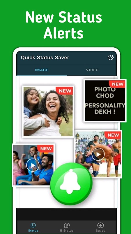 Penghemat Status Cepat: Simpan dan posting ulang gambar & video dari status dengan satu ketukan.