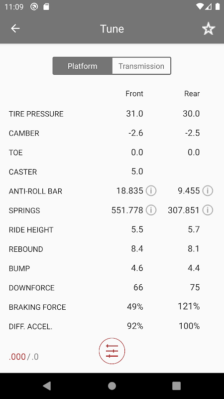 Opsi penyetelan lebih lanjut memungkinkan penyetelan khusus pada kondisi suhu, keseimbangan mobil secara keseluruhan, tekanan ban, palang anti-putar, pegas dan peredam, ketinggian pengendaraan, keseimbangan rem, diferensial, transmisi, dan aero.