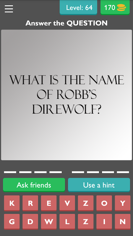 An easy and simple game for all ages, fun guaranteed for all Game of Thrones fans.