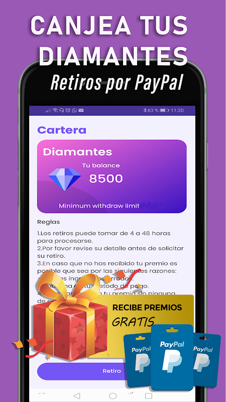 Canjee sus puntos de fidelidad "DIAMANTES" una vez acumules $5 por PayPal Es así de fácil ganar recompensas simplemente entrenando tus conocimientos generales y divirtiéndote. ¡Es rápido y fácil! Elija entre tarjetas de recompensas gratuitas.