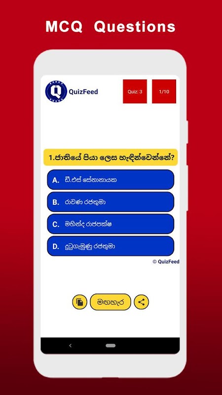 Quiz feed is not limited to narrow range of questions. It spreads to a broad range od questions which are from History of Sri Lanka, History of world, Technology, Science, Innovations, Art, Geography, Current affairs, Agriculture etc.