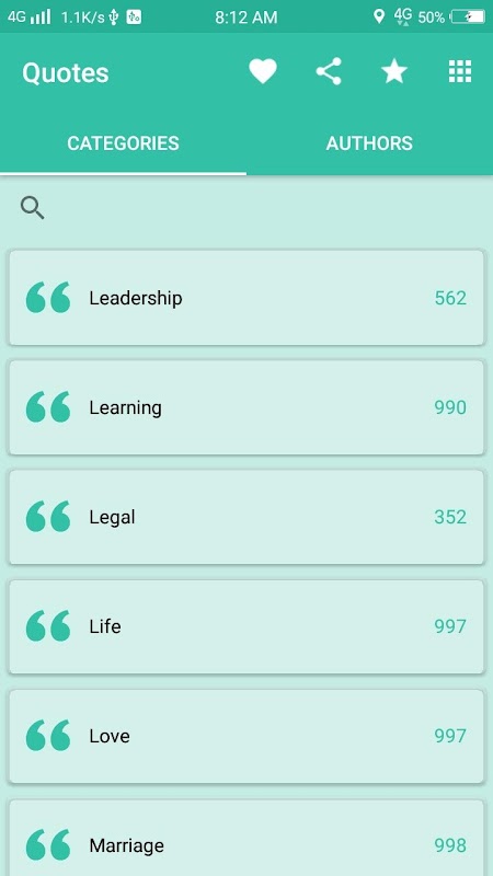 Quotes tersedia 100 + kategori dan 7000 + penulis.