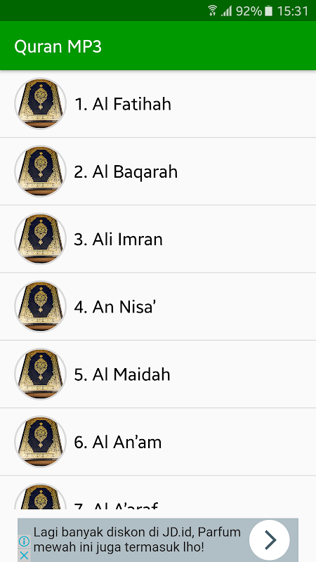 Surah List in Al Quran MP3 Full Offline: