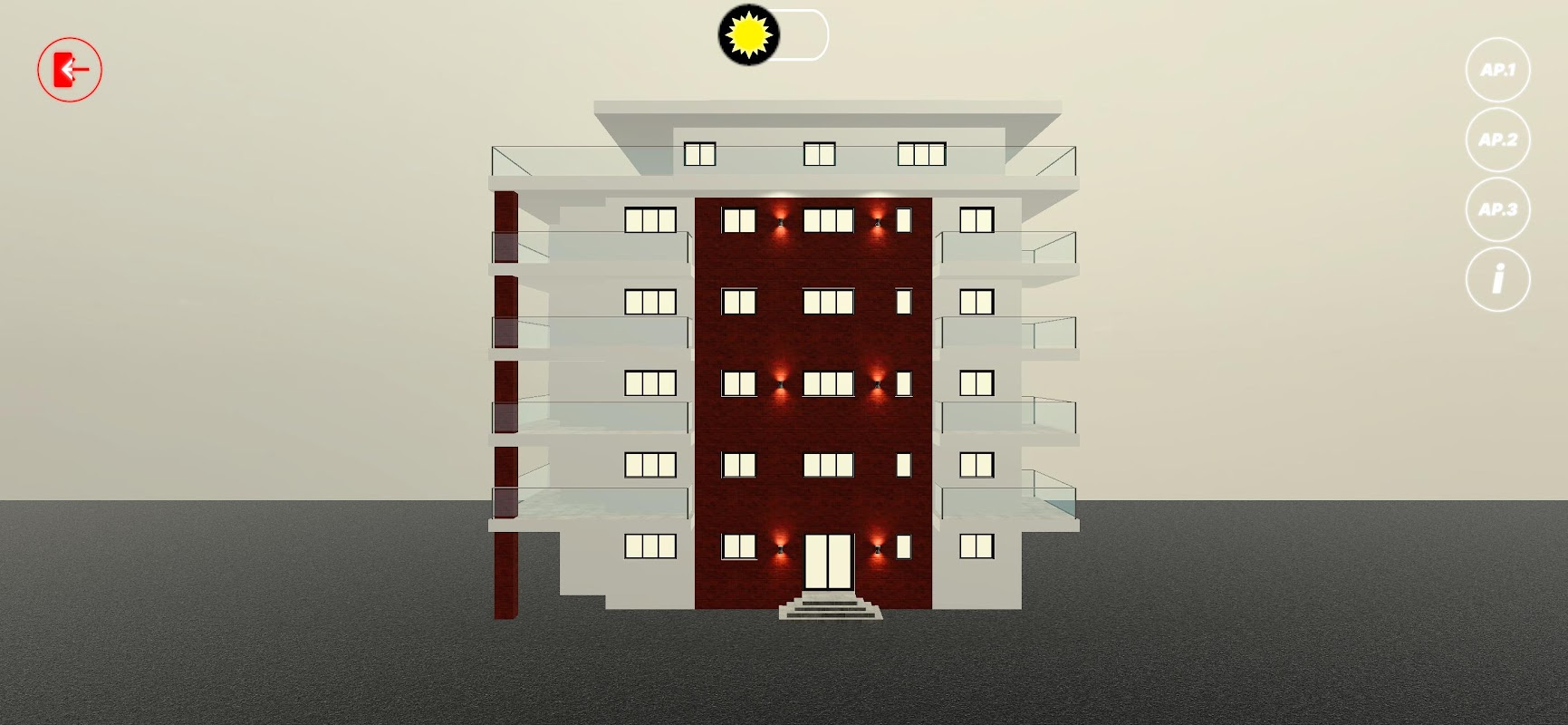 Aplikasi 3D interaktif yang menampilkan apartemen berperabotan untuk pengembang real estate