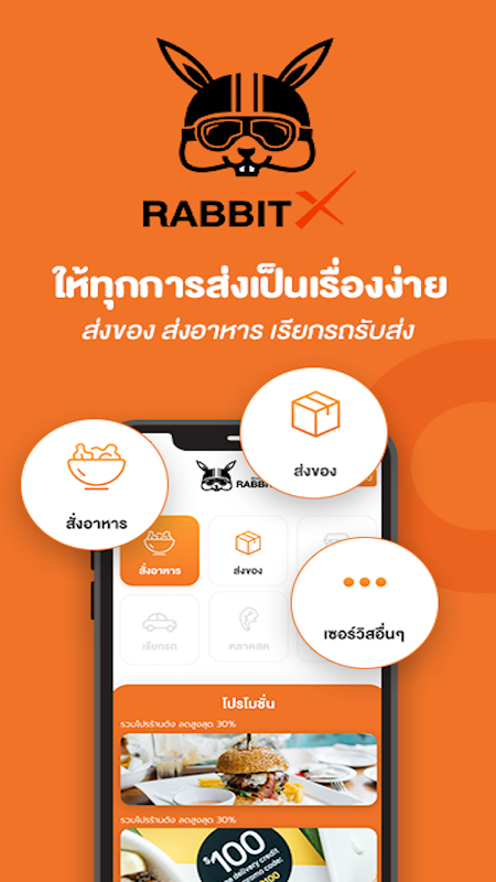 แรบบิทเอ็กซ์ RabbitX คือ แพลตฟอร์มการบริการและเดลิเวอรี่ บนแอพพลิเคชั่น ที่จะสร้างความสะดวกสบายในการใช้ชีวิต เน้นเรื่องการบริการครบวงจร ซึ่งมีการบริการต่างๆในแอพพลิเคชั่นดังนี้