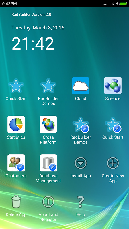 Do you want to create your own app? This is the perfect app for you. You can create your own apps for your presentations, documents, product introduction, advertisements and database management without programming. You don't have to be a programmer. RadBuilder makes it easy for anyone to create professional looking interactive, multimedia and database (local database and remote database server) apps. With its easy-to-use visual design environment, you don't have to know a thing about computer programming.