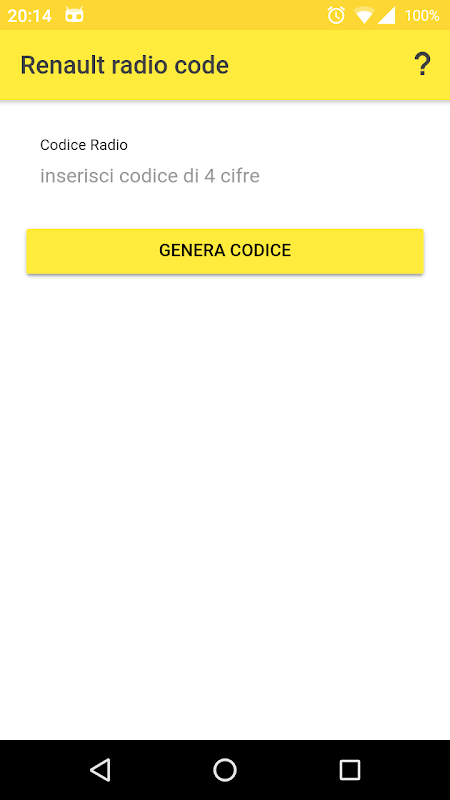 Aplikasi untuk generasi kode aktivasi untuk radio mobil Renault
