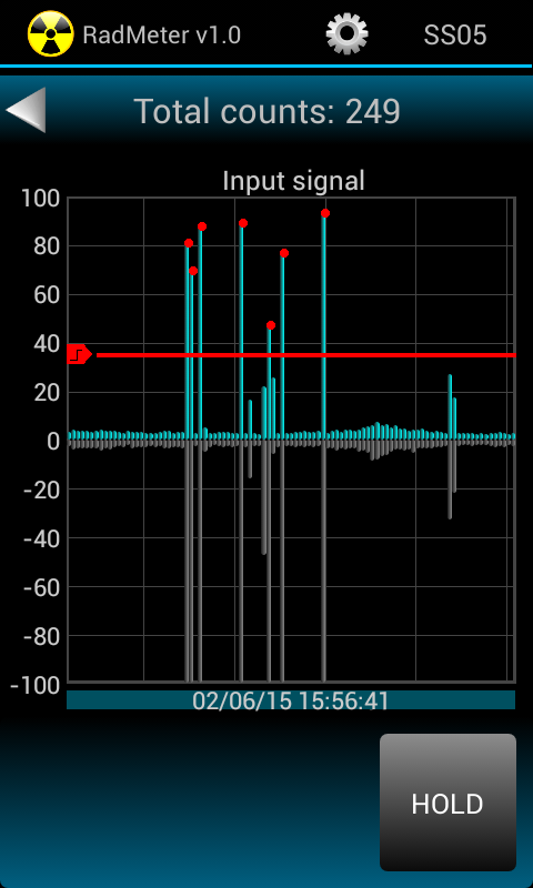 Aplikasi ini adalah pengukur radiasi yang berfungsi nyata asalkan Anda menghubungkan sensor eksternal SS05. Jika Anda tidak menyambungkan sensor apa pun, aplikasi akan menggunakan mikrofon internal ponsel hanya untuk tujuan demonstrasi. Sebagai alternatif, Anda dapat menggunakan tabung Geiger standar dengan antarmuka koneksi yang tepat. Rincian lebih lanjut tentang SS05 tersedia di http://optivelox.50webs.com/DL_en/ss0x.htm
