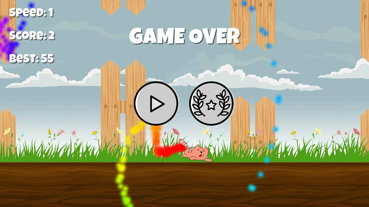 Cukup sentuh layar untuk membiarkan kucing rainbow terbang dan melewati lubang-lubang di pagar, mencoba untuk lulus sebagai banyak kendala mungkin, menyeimbangkan di udara!