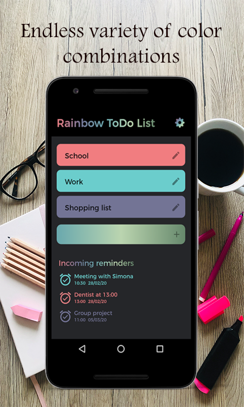 Rainbow To-Do List adalah aplikasi To-Do List yang sangat berwarna dan sederhana untuk pengaturan yang lebih baik dari semua tugas, pengingat, dan catatan Anda.