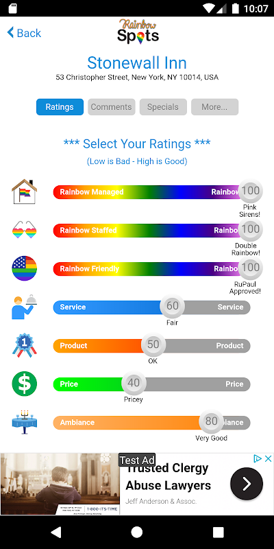 Temukan dan Nilai semakin banyak tempat ramah LGBTQ+ di dekat Anda. Tunjukkan PRIDE Anda dan dukung Rainbow! Gunakan RainbowSpots!