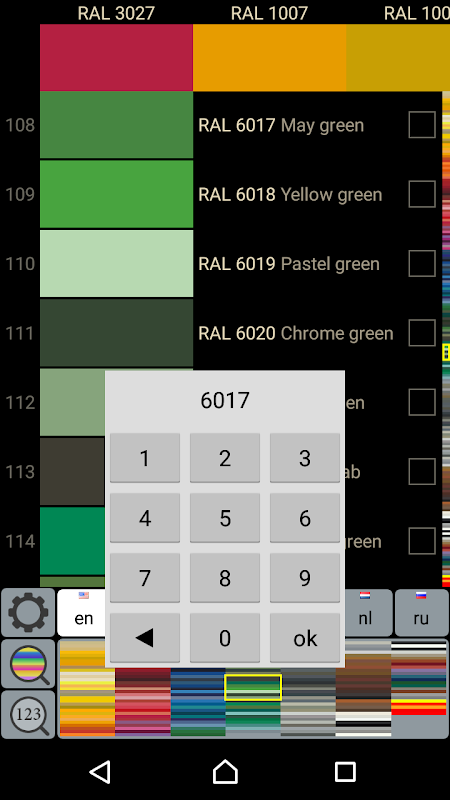 Warna RAL Katalog sederhana dengan nama warna resmi dalam 7 bahasa.