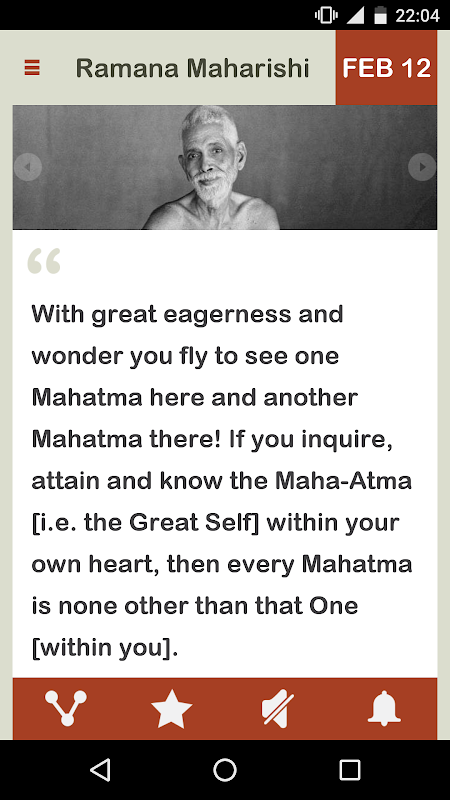 Ramana Maharishi Harian membawa Kebijaksanaan Spiritual Ramana kepada Anda dalam bentuk Mobile App, bangun setiap hari, dengan kebijaksanaan Spiritual Ramana Maharishi, mulai hari ini.