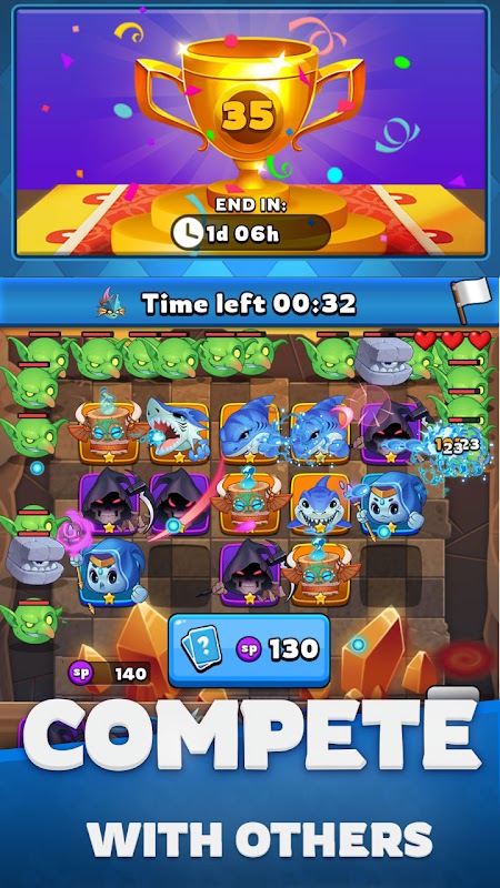 Puluhan pahlawan dengan kemampuan unik. Anda dapat mengatur berbagai deck untuk menghadapi musuh yang berbeda. Campur dan cocokkan berbagai pahlawan dan ciptakan dek terbaik dan kuat Anda.