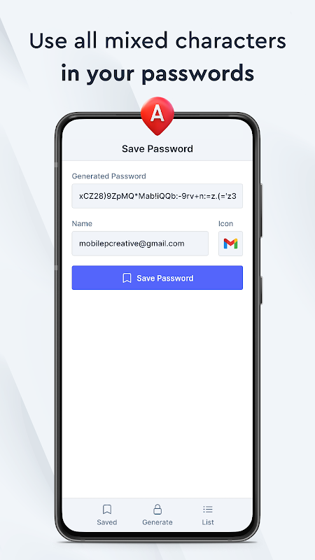 Anda juga dapat menyimpan kata sandi apa pun yang ingin Anda simpan dengan memberinya nama dan ikon deskriptif. Anda dapat dengan mudah menyalin dan menggunakan semua kata sandi kapan pun Anda membutuhkannya dengan satu gerakan ketukan. Pembuat Kata Sandi juga dapat didefinisikan sebagai pengelola kata sandi dengan fitur "Kata Sandi Tersimpan".