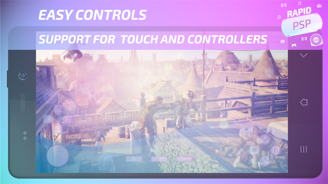 Semua game yang ditiru menggunakan ponsel cerdas Anda dengan cara yang sama seperti konsol dengan pengontrol game. Nikmati gameplay lord of war, Rapid PSP Emulator memberimu kemampuan untuk kualitas game yang maksimal, menikmati aplikasi buatan sendiri dan game PSP yang hebat.