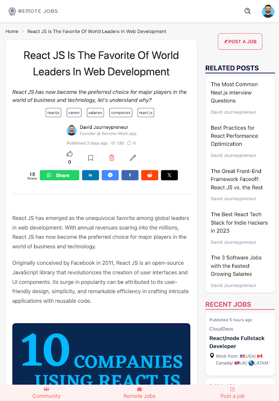 Selain itu, aplikasi kami sepenuhnya gratis untuk digunakan! Jadi tunggu apa lagi? Unduh ReactRemoteJobs hari ini dan mulai pencarian kerja React jarak jauh Anda!