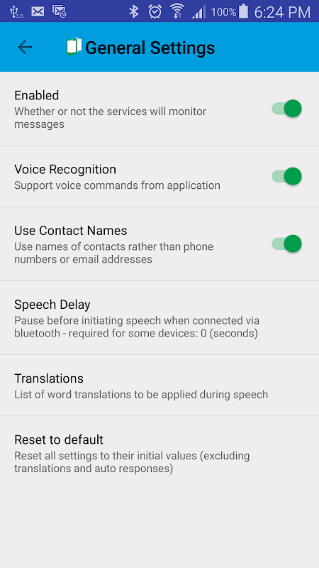 - User configured settings to ensure text messages are read aloud clearly via bluetooth devices