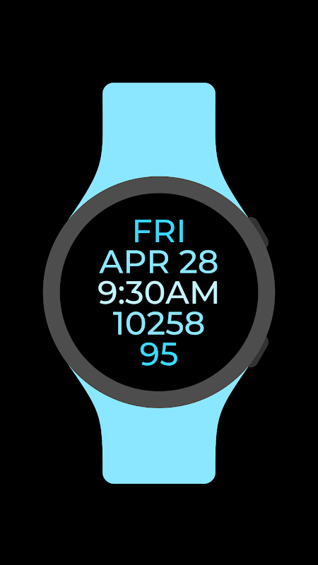 Tampilan Jam yang Dapat Dibaca adalah tampilan jam digital yang sangat mudah dibaca untuk jam tangan pintar Wear OS. Ada 30 tema warna yang tersedia. Komplikasi default yang ditampilkan adalah: