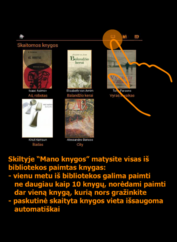 Pilih di antara hampir 1.000 e-buku berkualitas tinggi Lithuania dan Inggris, membacanya nyaman - Meningkatkan atau menurunkan ukuran font, membacanya tanpa koneksi internet (offline), membacanya secara gratis.