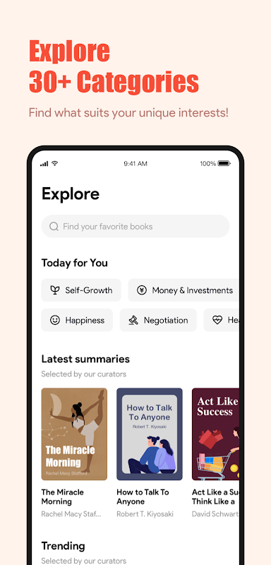 📚 Beragam Kategori: Temukan ringkasan tentang pertumbuhan diri, bisnis, kesehatan, produktivitas, dan banyak lagi. Baik Anda ingin meningkatkan hubungan, meningkatkan karier, atau mempelajari keterampilan baru, kami siap membantu Anda.
