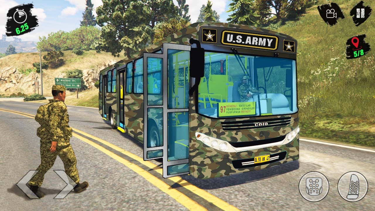 Simulator bus memungkinkan Anda untuk mengangkut komando tentara ke pangkalan pelatihan militer dengan bantuan bus tentara. Mulai bus tentara dan nikmati pengangkutan komando tentara di bus tentara yang mengendarai game 3d. Pilih & turunkan komando tentara pada waktu tertentu yang ingin bus tentara mencapai kamp militer mereka. Dalam permainan bus ini, adalah tugas Anda sebagai pengemudi permainan tentara untuk mengangkut semua komando tentara ke pangkalan pelatihan militer mereka tepat waktu di bus tentara baru 2022 off-road. Jadilah pengemudi tentara yang paling ahli dan terlatih dalam permainan tentara simulator bus dengan mengambil komando tentara dari slot mereka di bus tentara dan membawa mereka aman dan sehat melalui semua halte di bus pelatih. Pelajari cara mengelola transportasi tentara dengan bersenang-senang di trek off-road dengan game mengemudi bus tentara 3D.